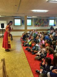 Heute waren die Schüler der TGGS in der Bücherei Grafenrheinfeld versammelt und schauten sich "Die Händlerin der Worte" dargeboten vom Nimmerland Theater an.