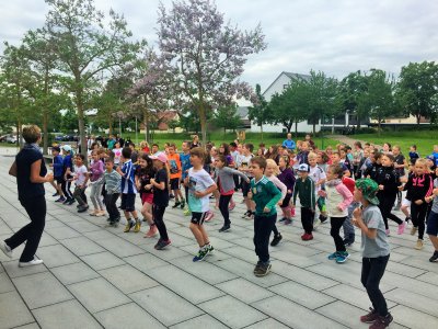 Zunächst machte Frau Schwarz die Kinder fit für die sportlichen Leitungen und wärmte die Schüler auf. Danach ging es in Riegen an die einzelnen Stationen.